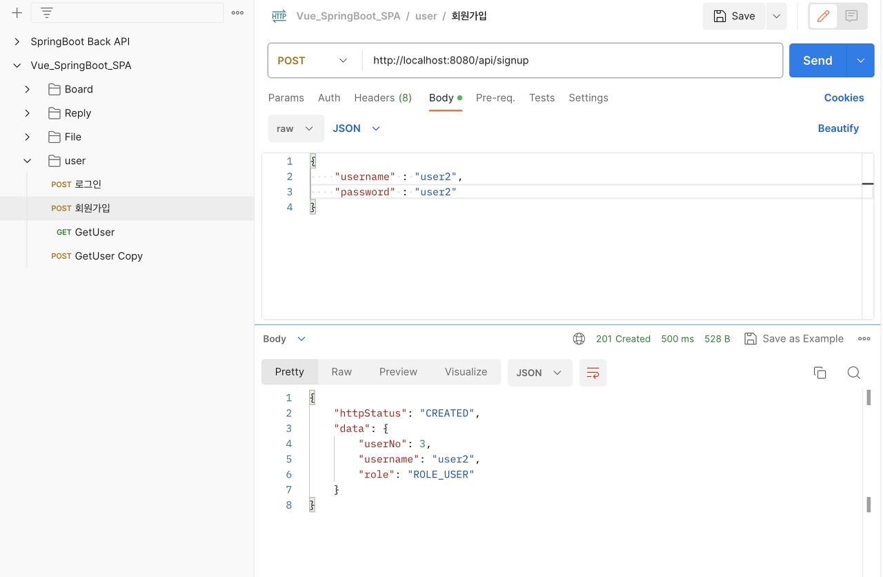 테스트는 'Postman'으로 진행한다.