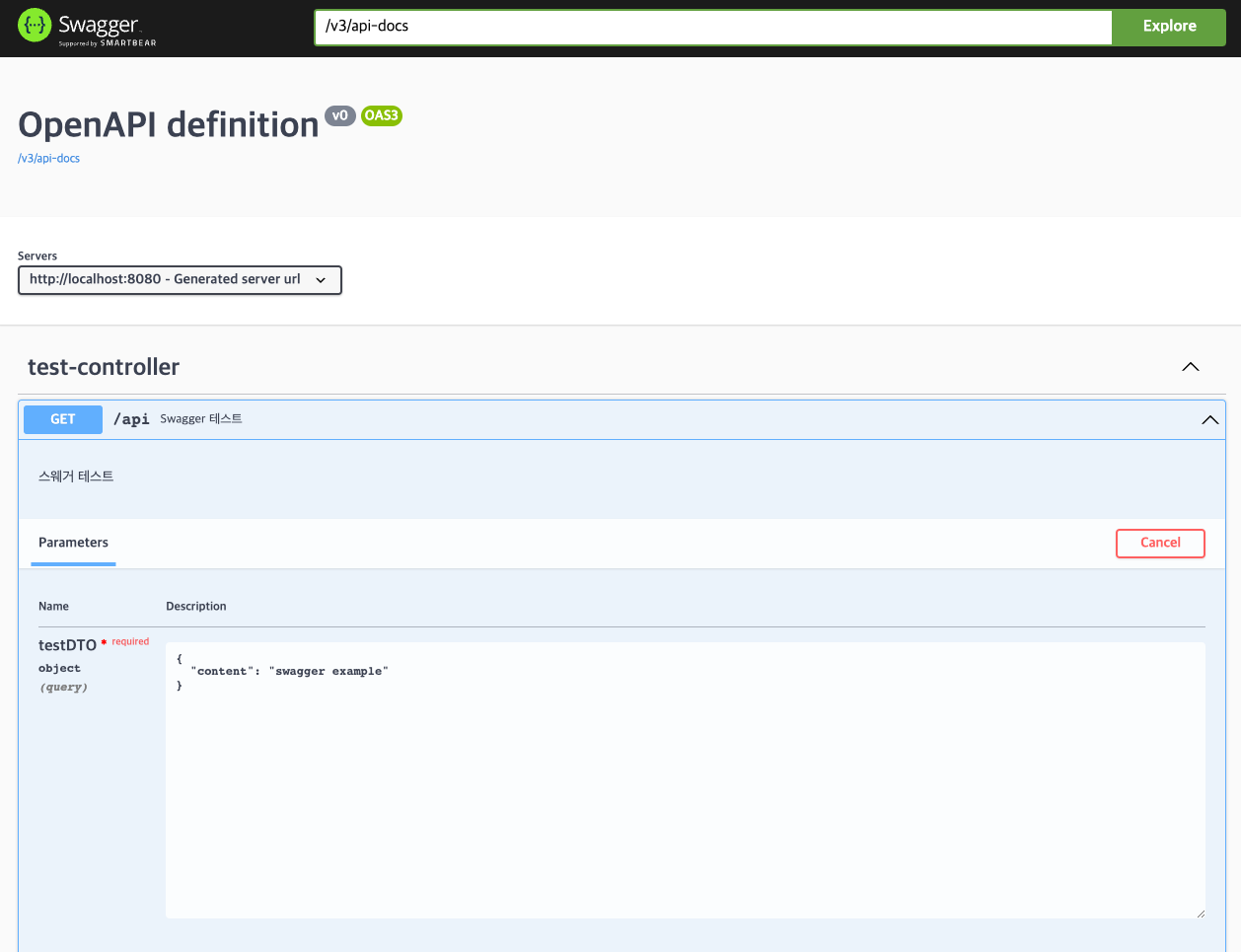 @Operation(summary = "Swagger 테스트", description = "스웨거 테스트")