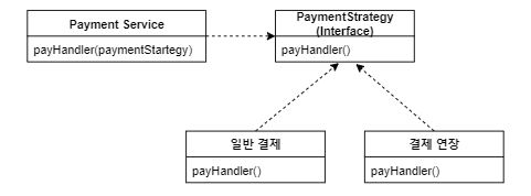 위 부분을 PaymentStrategy 인터페이스를 사용하여 분리해 주었다.